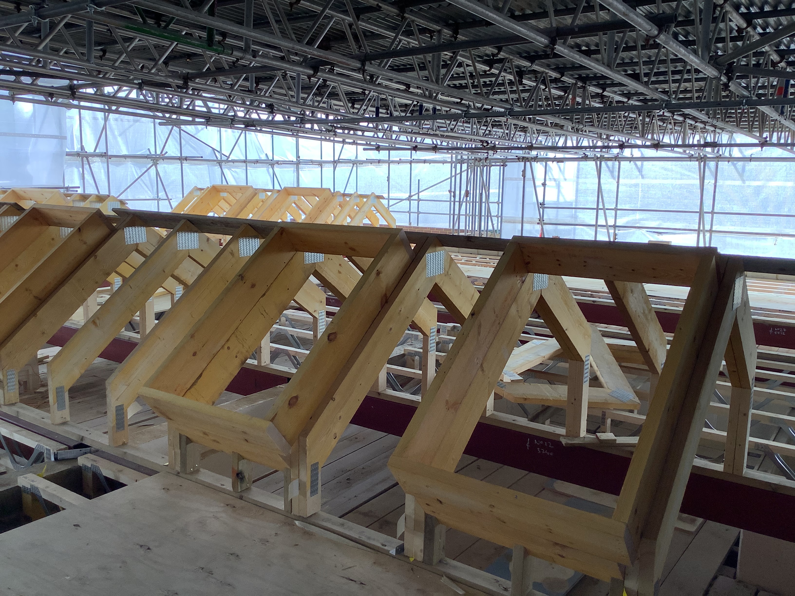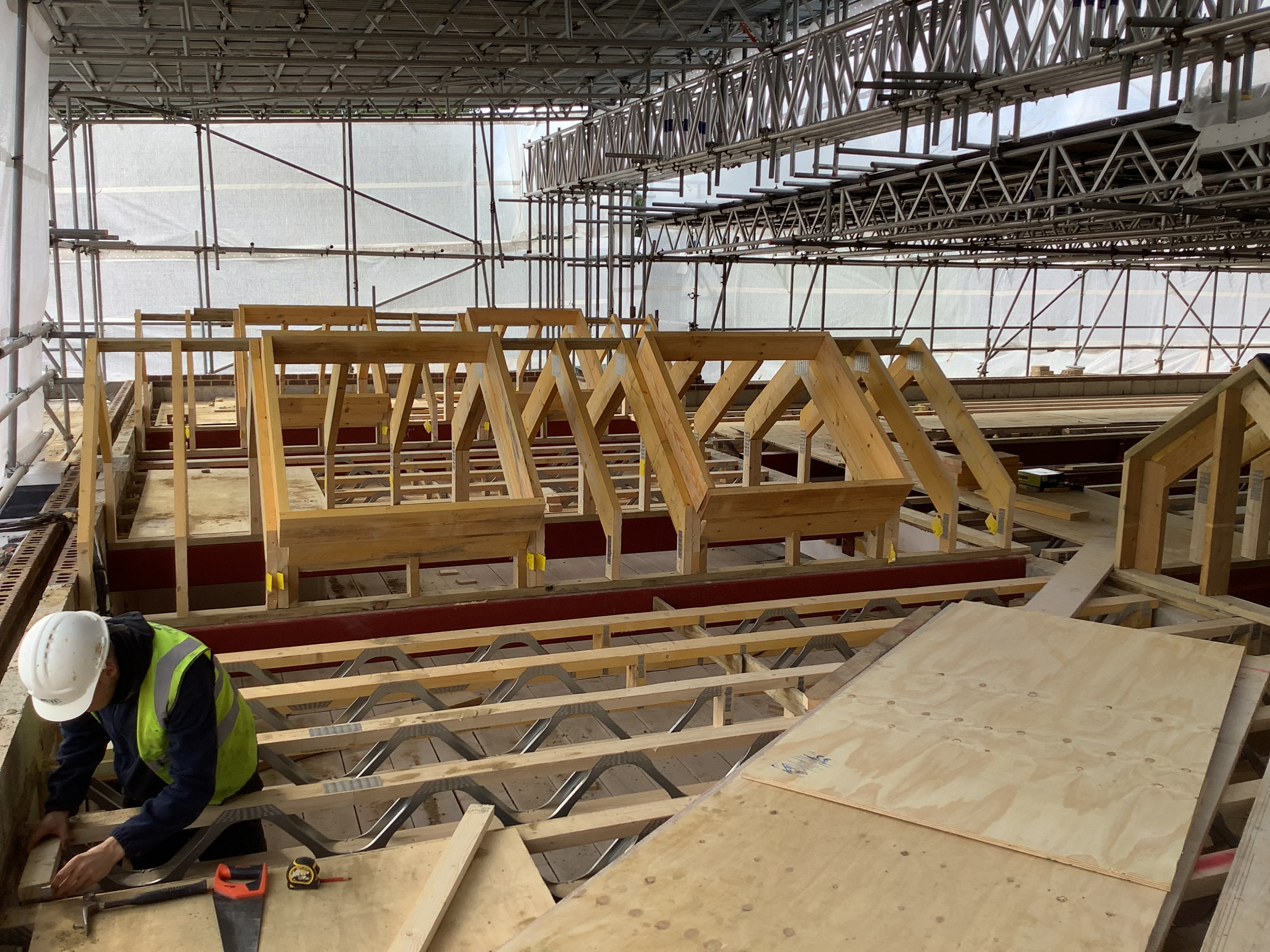 Over the past few weeks, the contractors have been busy installing the new roof. Have a look at photos below to see the work that has taken place- you can see all of the roof supports that have been installed.