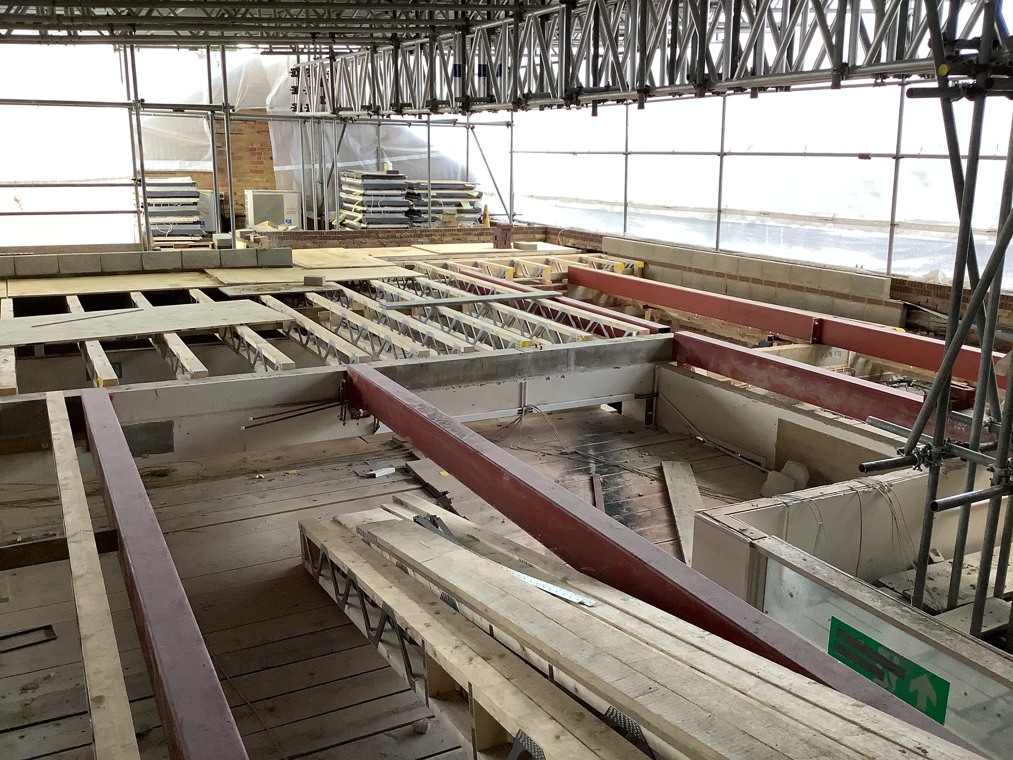 With a large amount of scaffolding inside and outside the building, it is hard to see the progress that is being made. We need to await the grand reveal! The contractors have been extremely busy over the summer holidays and all the demolition work for the project is now complete. The old roof has been removed and preparations are underway to install the new roof.