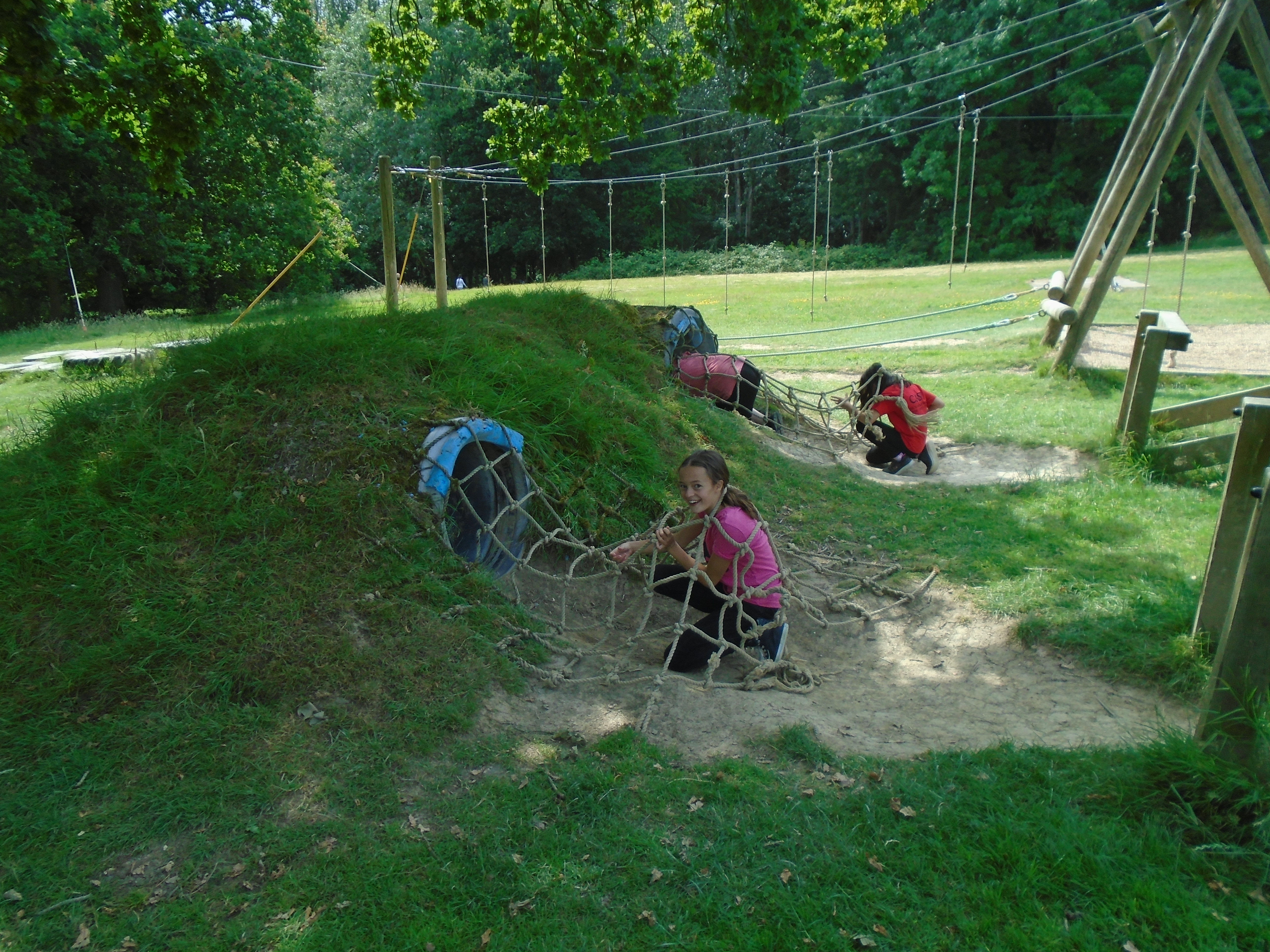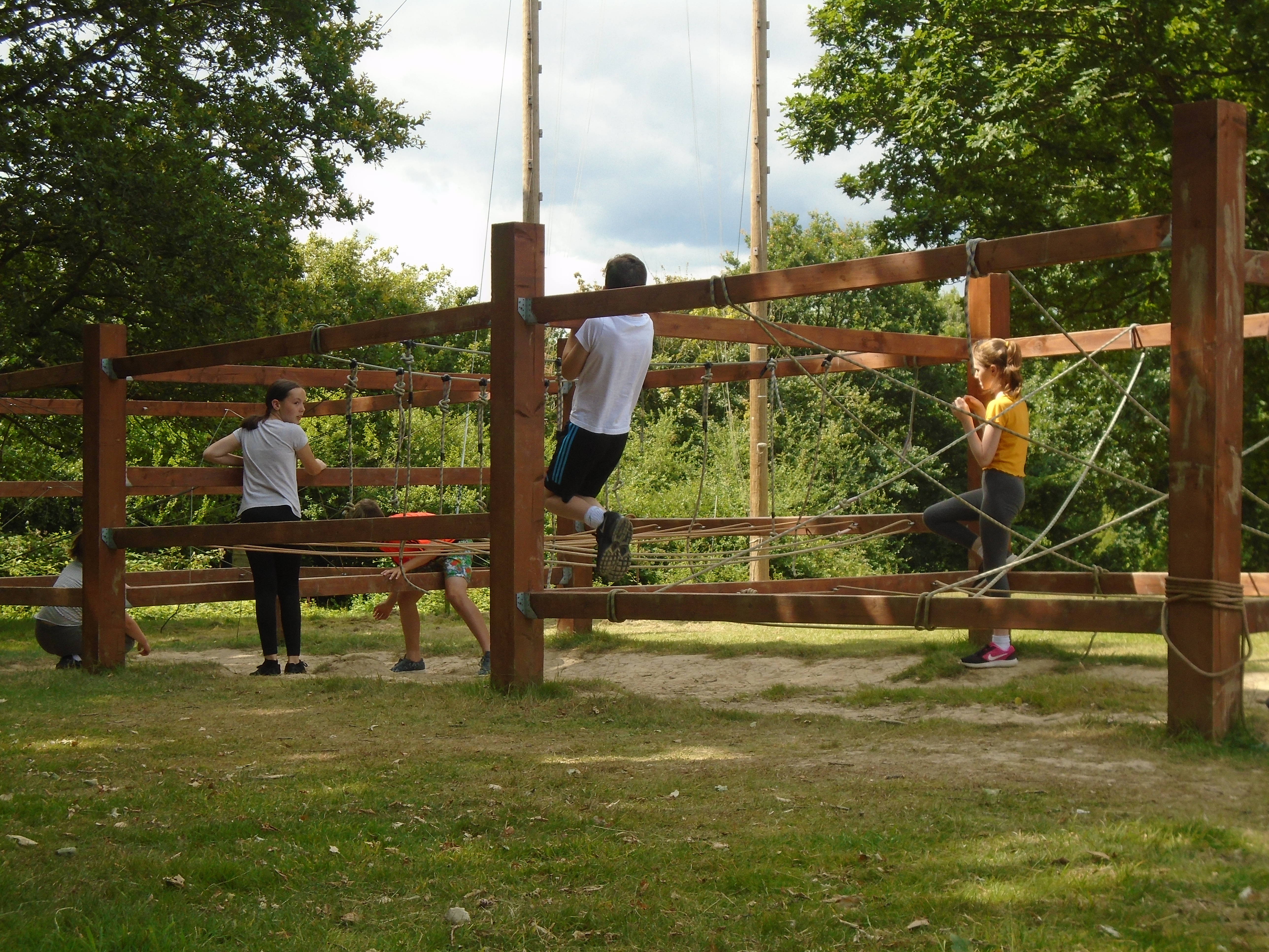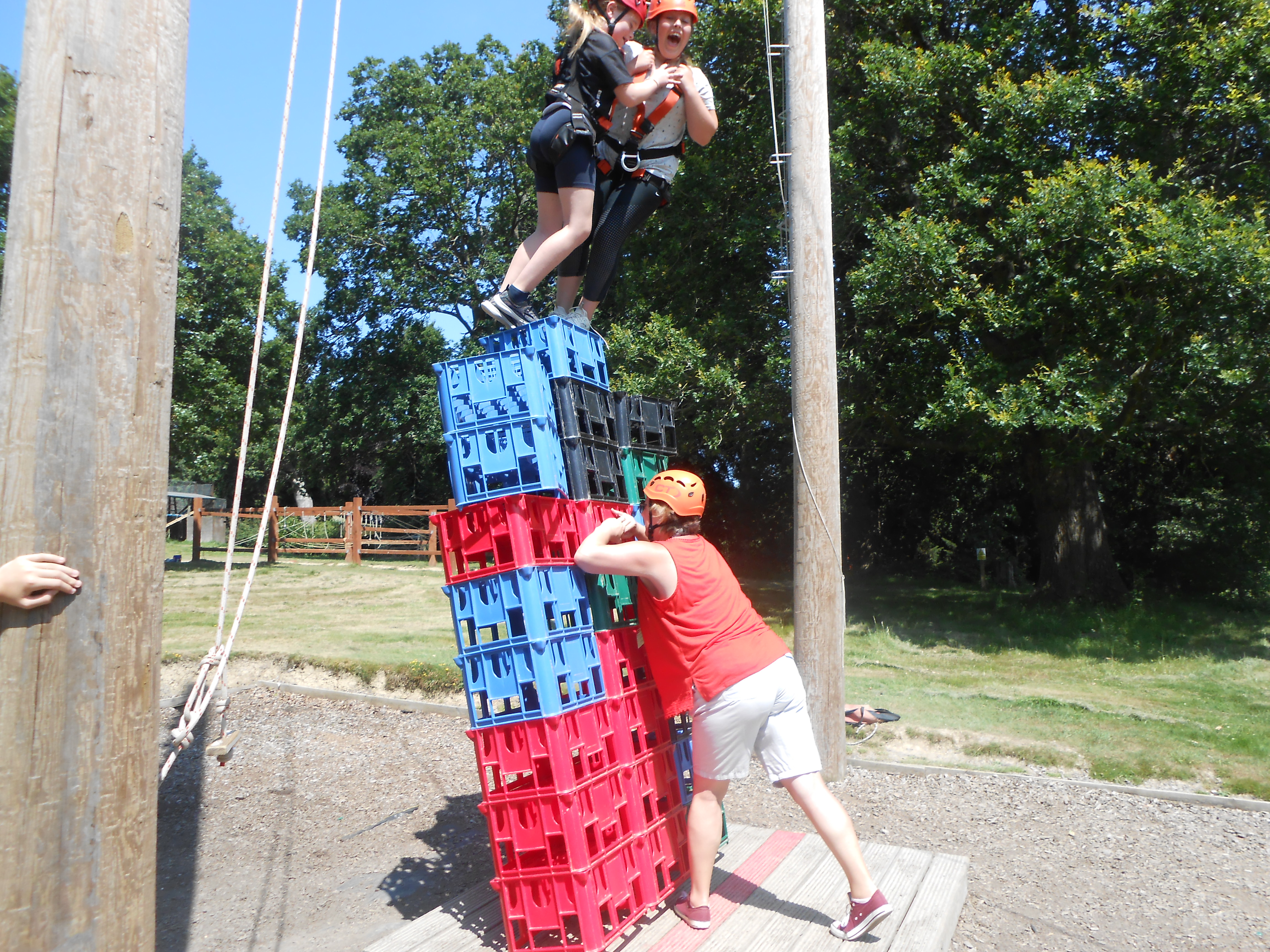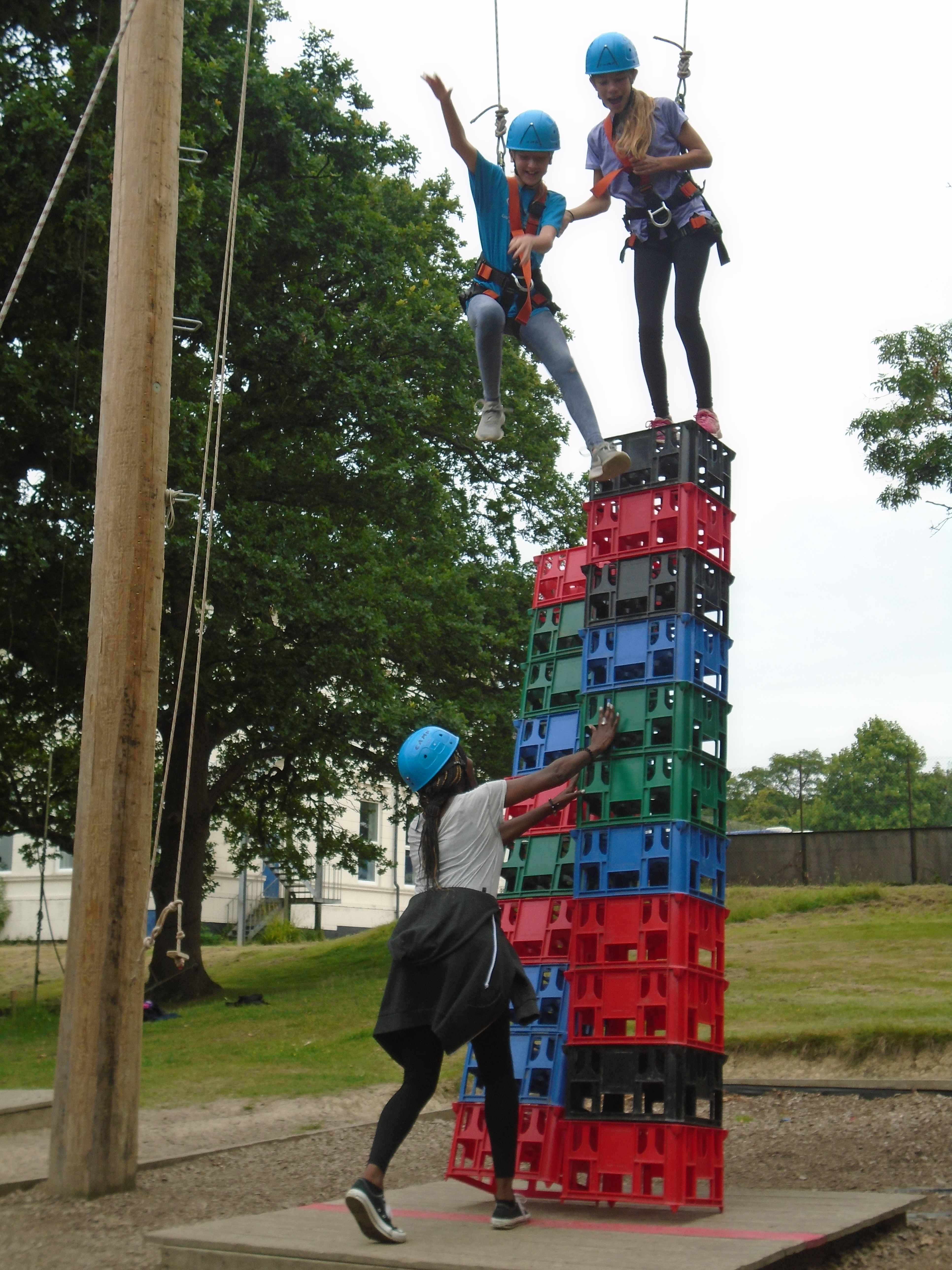High Ropes Activities: High Zip Wire, Jacob's Ladder, Postman's Walk, Crate Stacking and Battering Ram.
