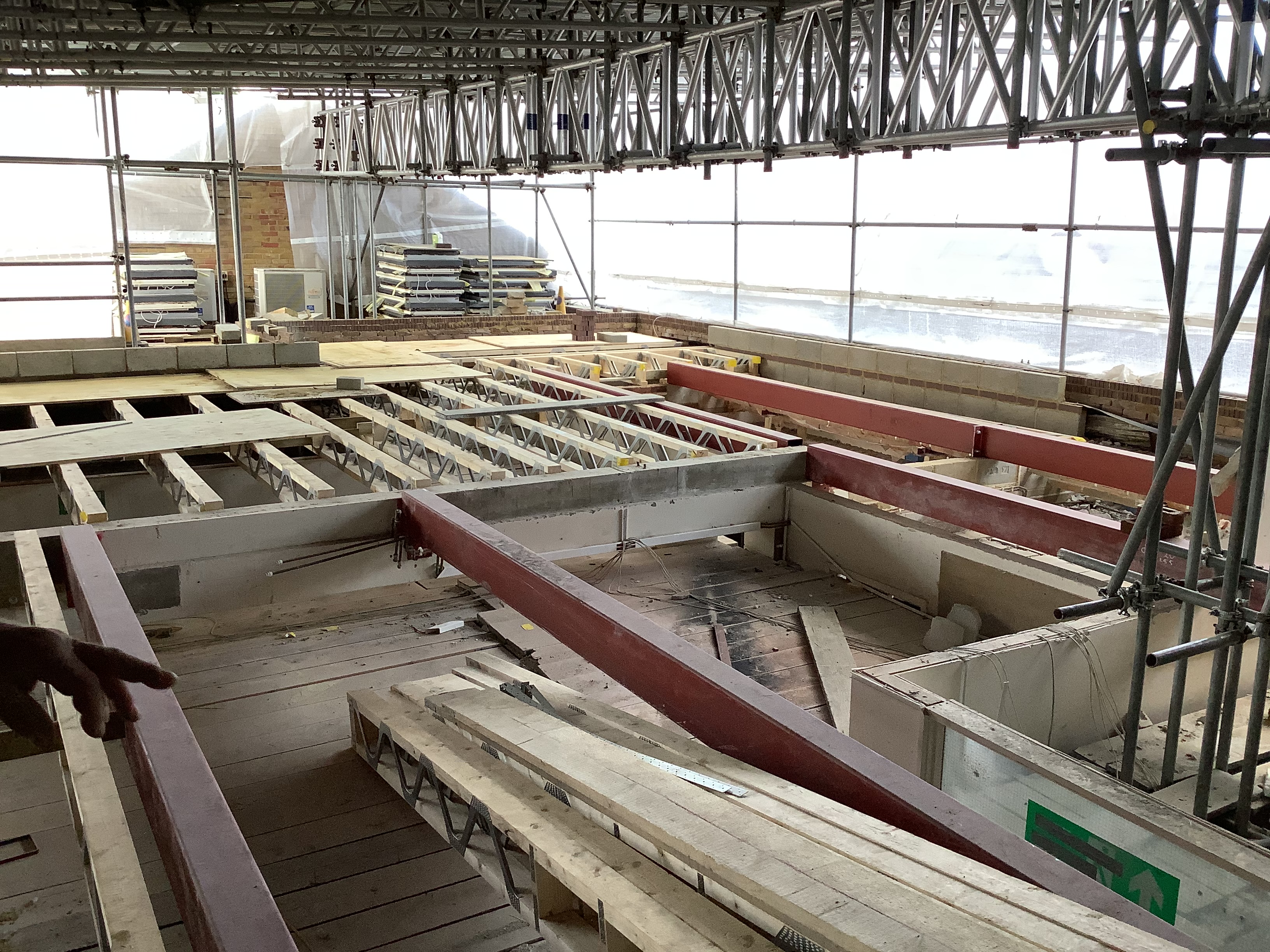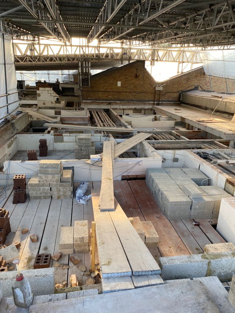 With a large amount of scaffolding inside and outside the building, it is hard to see the progress that is being made. We need to await the grand reveal! The contractors have been extremely busy over the summer holidays and all the demolition work for the project is now complete. The old roof has been removed and preparations are underway to install the new roof.
