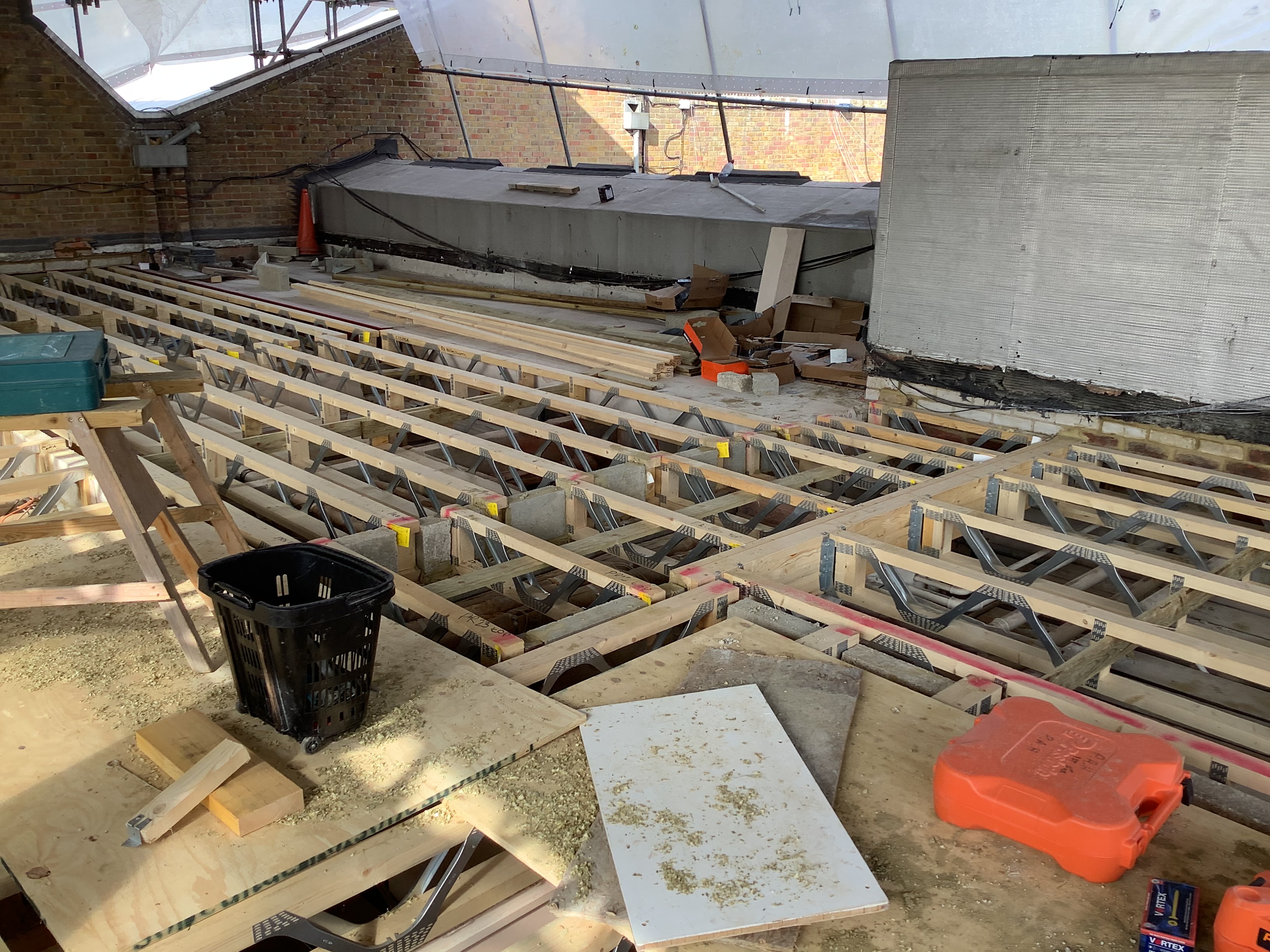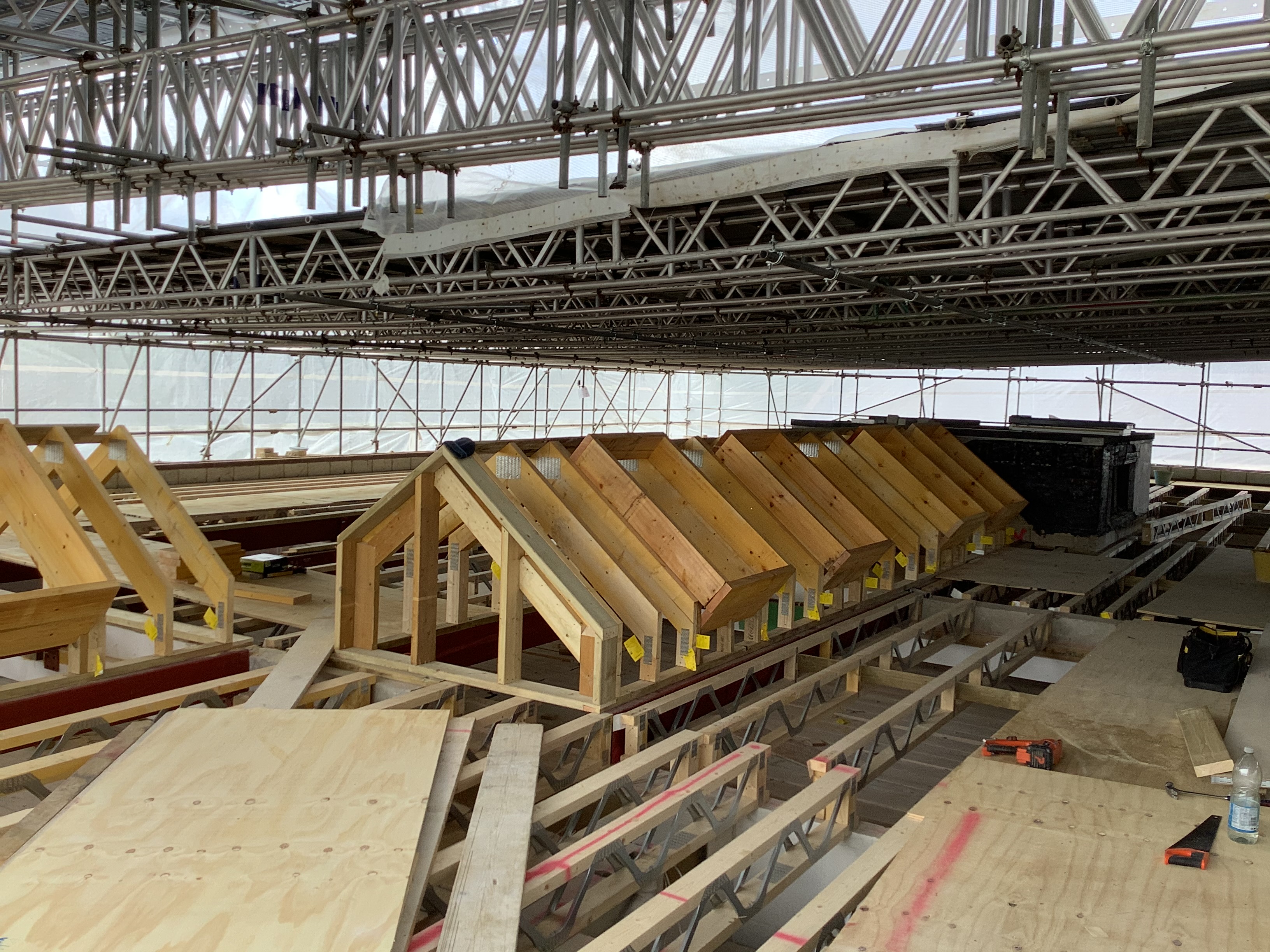 Over the past few weeks, the contractors have been busy installing the new roof. Have a look at photos below to see the work that has taken place- you can see all of the roof supports that have been installed.